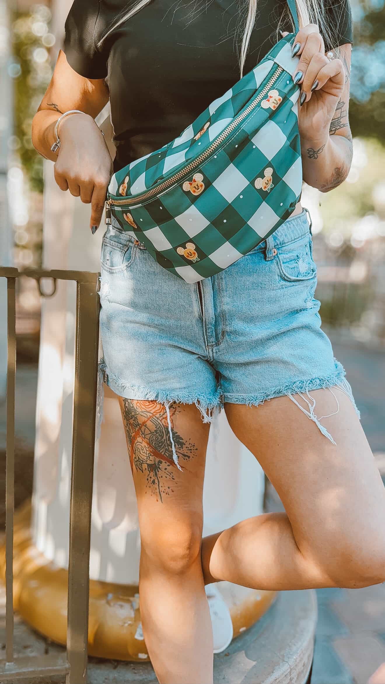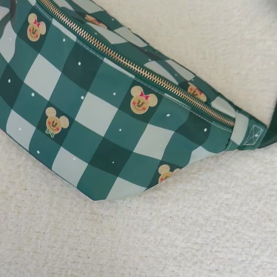 Our XL Jumbo Green Checker belt bag features the cutest gingerbread mouse heads to be festive at the parks! These bags are READY TO SHIP!
