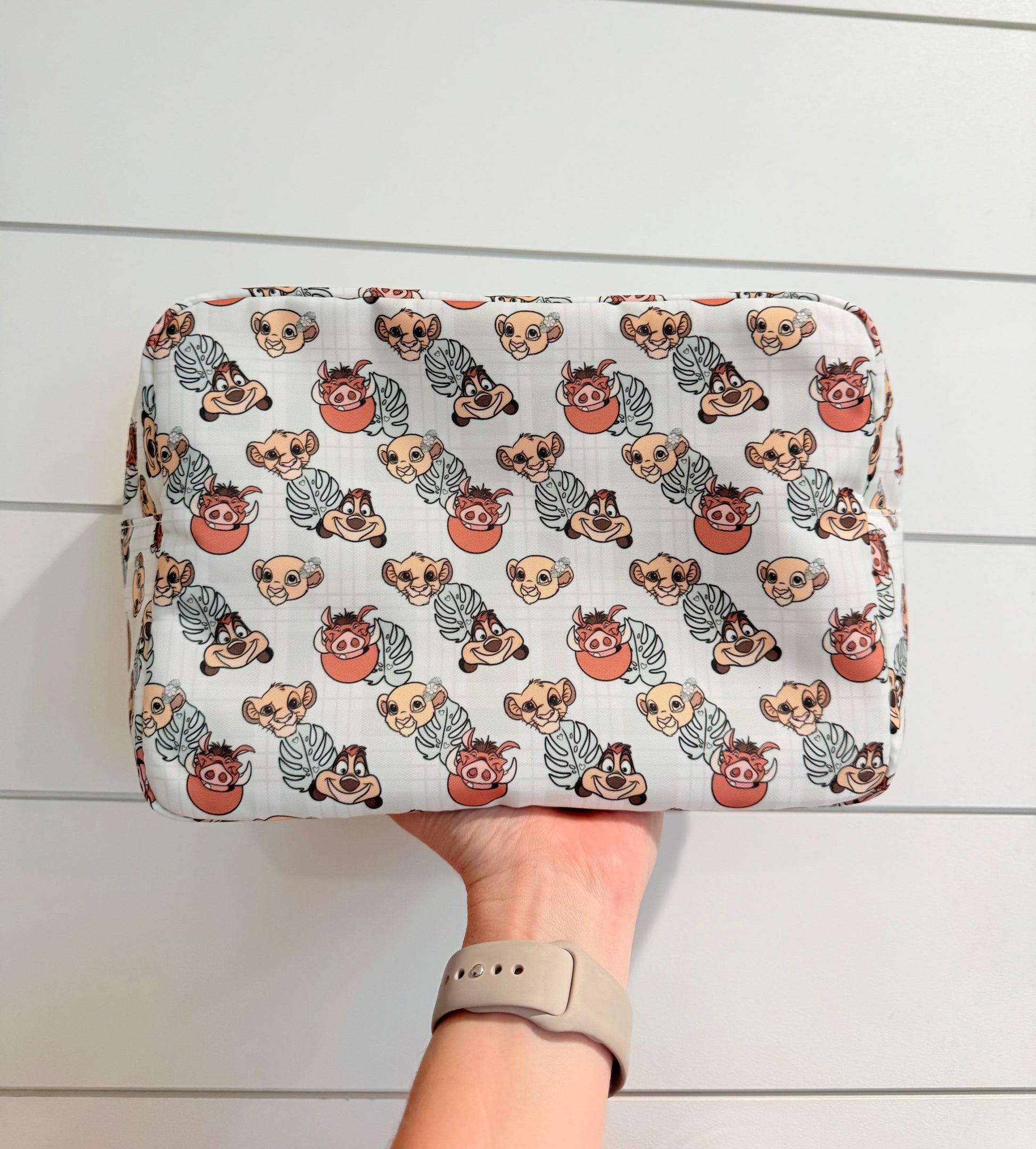 This is a size XL zipper pouch, cosmetic bag. Perfect for holding all of your Ears, cosmetics, toiletries, etc. READY TO SHIP!